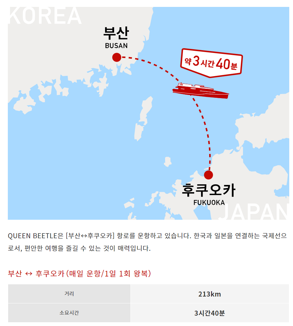 퀸비틀은 한국의 부산과 일본의 후쿠오카를 운항하는 JR큐슈고속선이 운영하는 고속페리입니다.