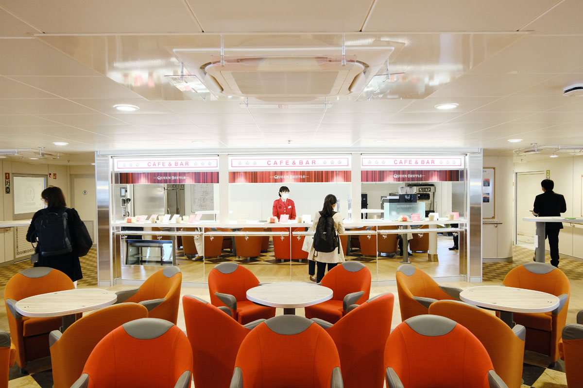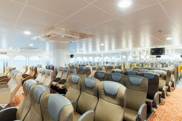 퀸비틀에서는 운항 중에도 안전벨트를 착용하지 않고 선내의 편의시설들을 자유롭게 이용할 수 있고 선내 라운지에서 식사나 대화를 즐기거나 갑판으로 나가 바닷바람을 쐬는 것도 가능해서 좁고 갑갑한 비행기에서의 이동 시간이 지루하셨던 분들께는 좋은 이동편이죠.